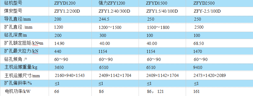 ZFYD系列低矮型反井鉆機是一種機械化程度高、安全高效的反井施工設(shè)備。該機型的最大優(yōu)點 是工作高度低,在一般巷道中不用挑頂開挖峒室,從而縮短了施工時間,提高了工效;鉆機采用了 高強度合金鋼制造,整機外形尺寸小、重量輕,井下運輸十分方便、輕巧。該機不僅能鉆鑿煤礦的 煤倉、通風井、溜煤眼、延伸井筒及各種暗立井,還可廣泛應用于冶金、化工、水電等行業(yè)。 ZFYD 系列低矮型反井鉆機只要將雙伸縮推進油缸更換成單級推進油缸就可以變成普通型反井鉆機, 最大 鉆孔深度可達到300m,適用巖石硬度最大可達到f=16,是特別適用于煤礦反井施工的專用機具。